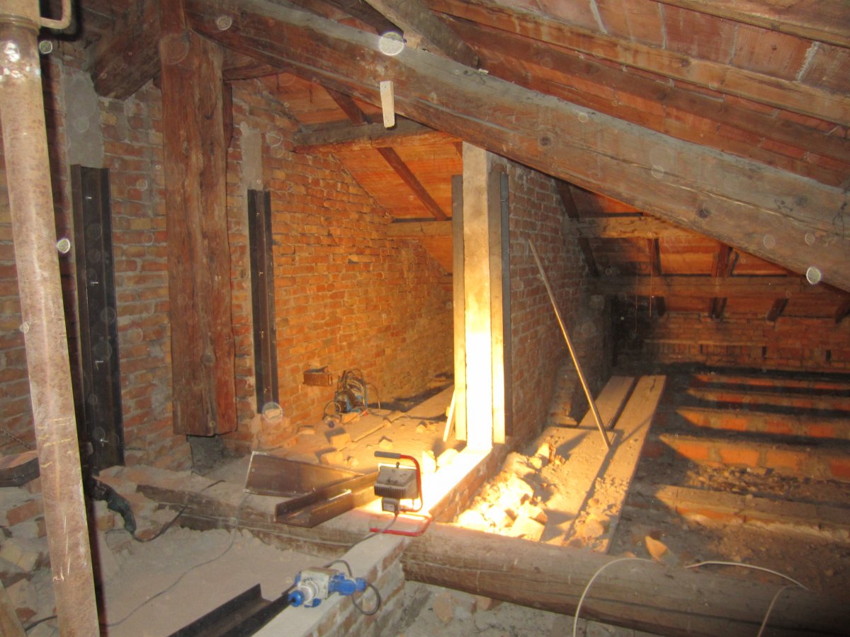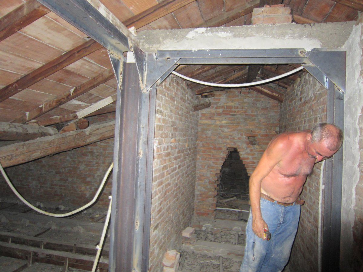 Stabilizzazione timpani muratura con profili acciaio.
