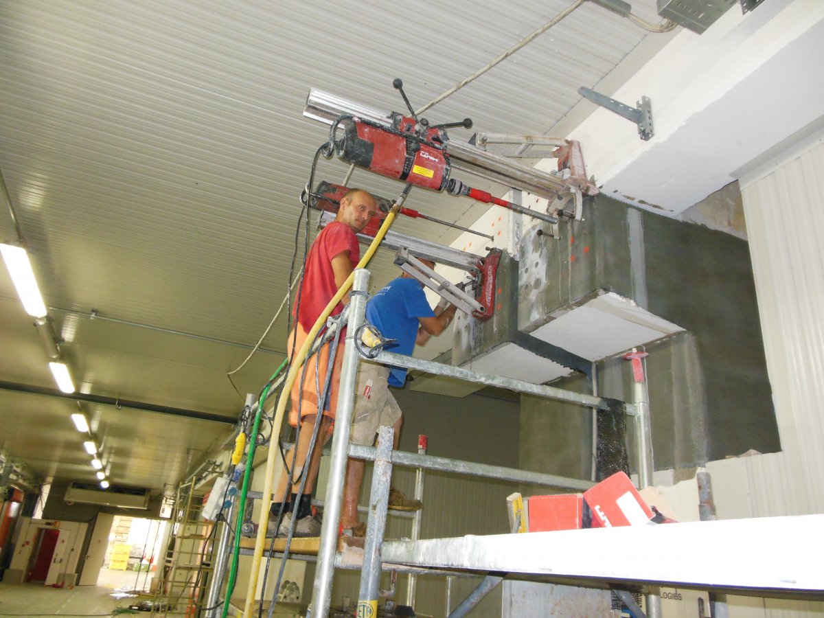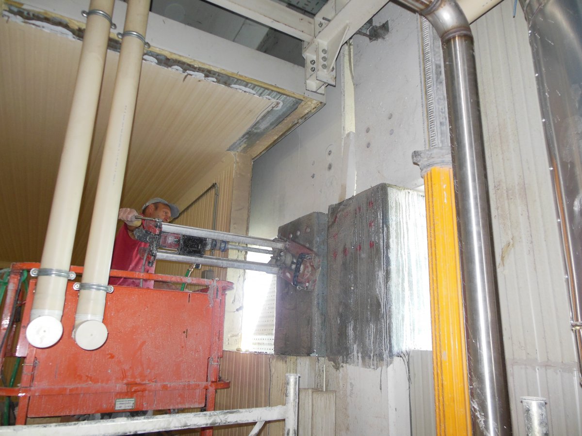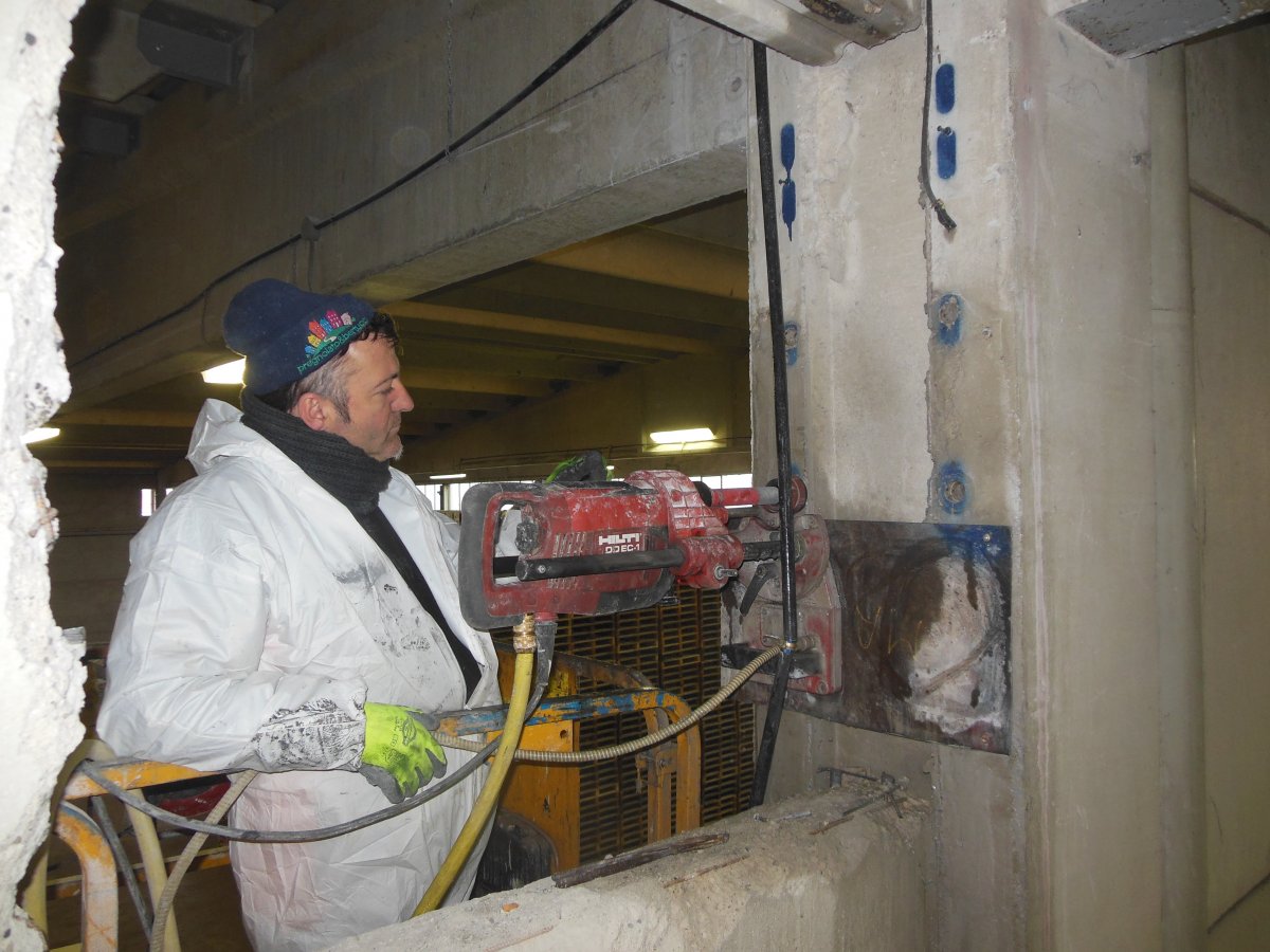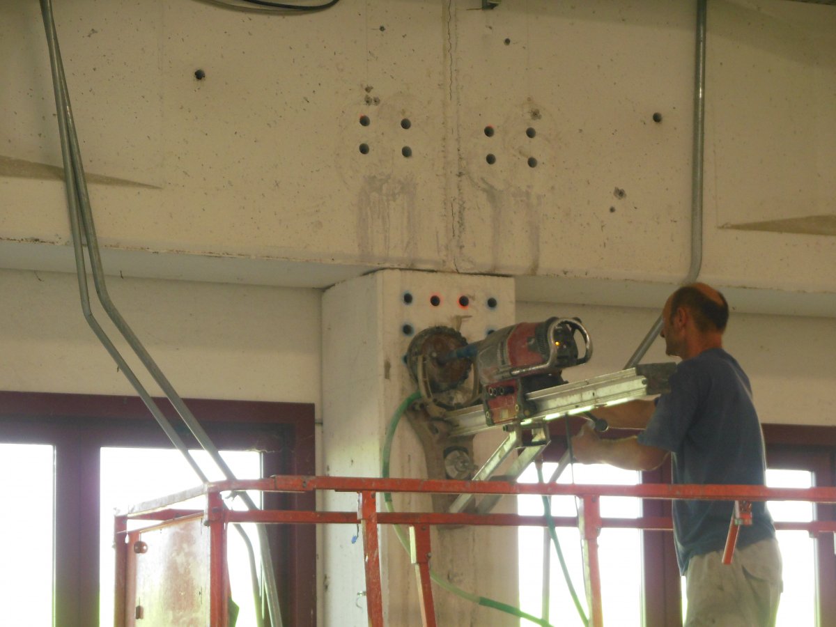 Carotaggi ad acqua di strutture prefabbricate con controllo delle posizioni delle armature.