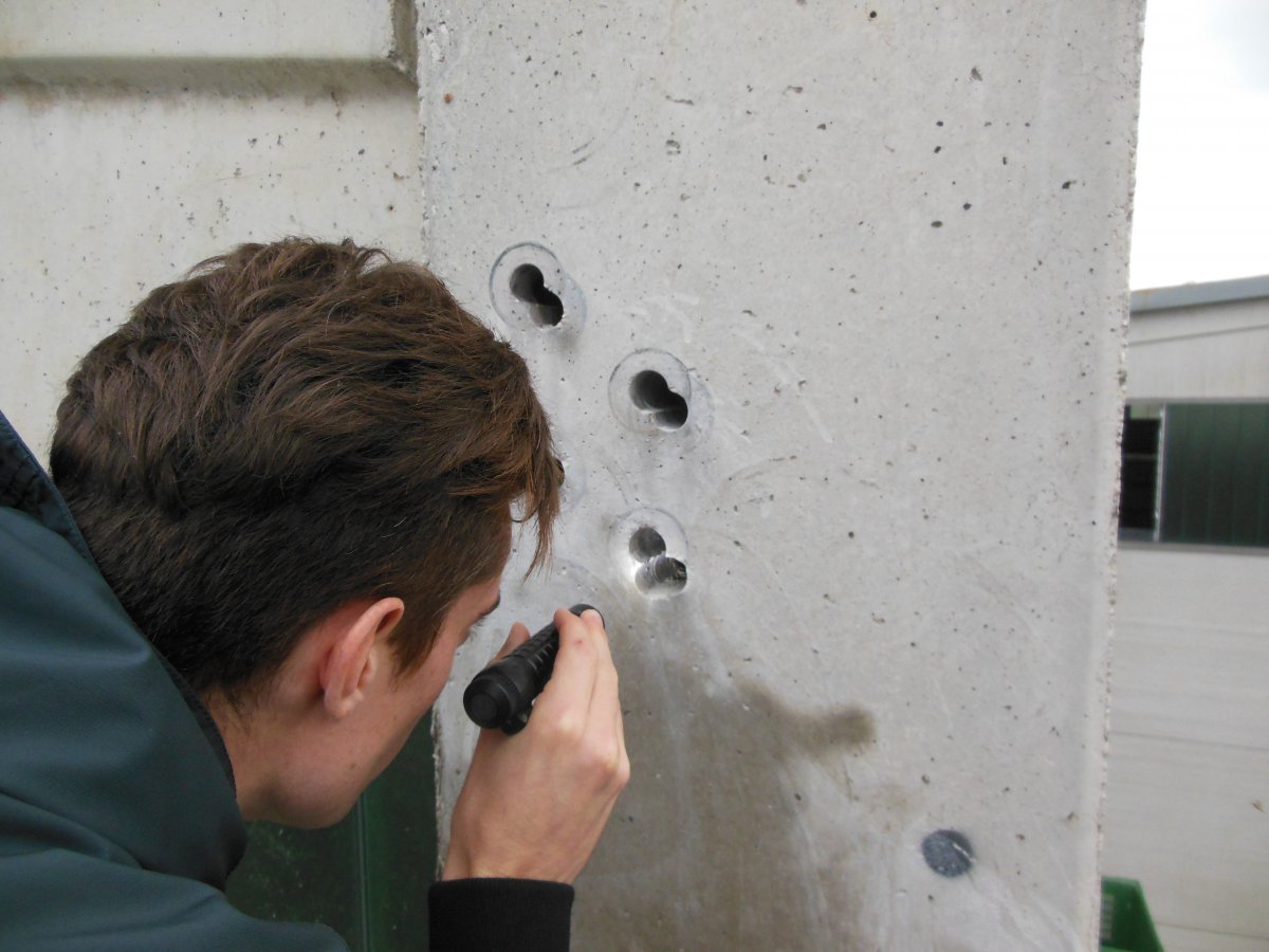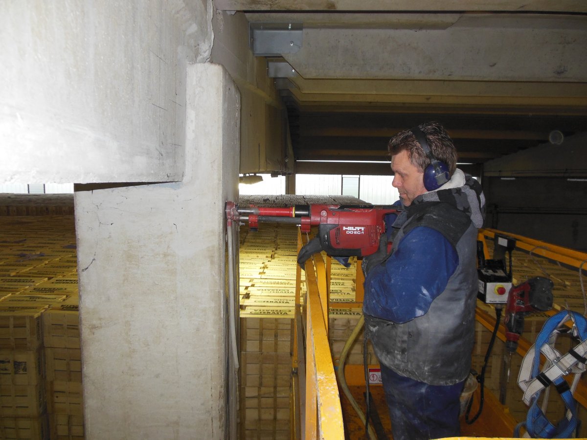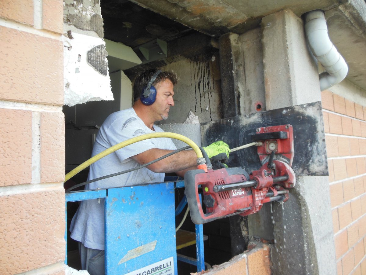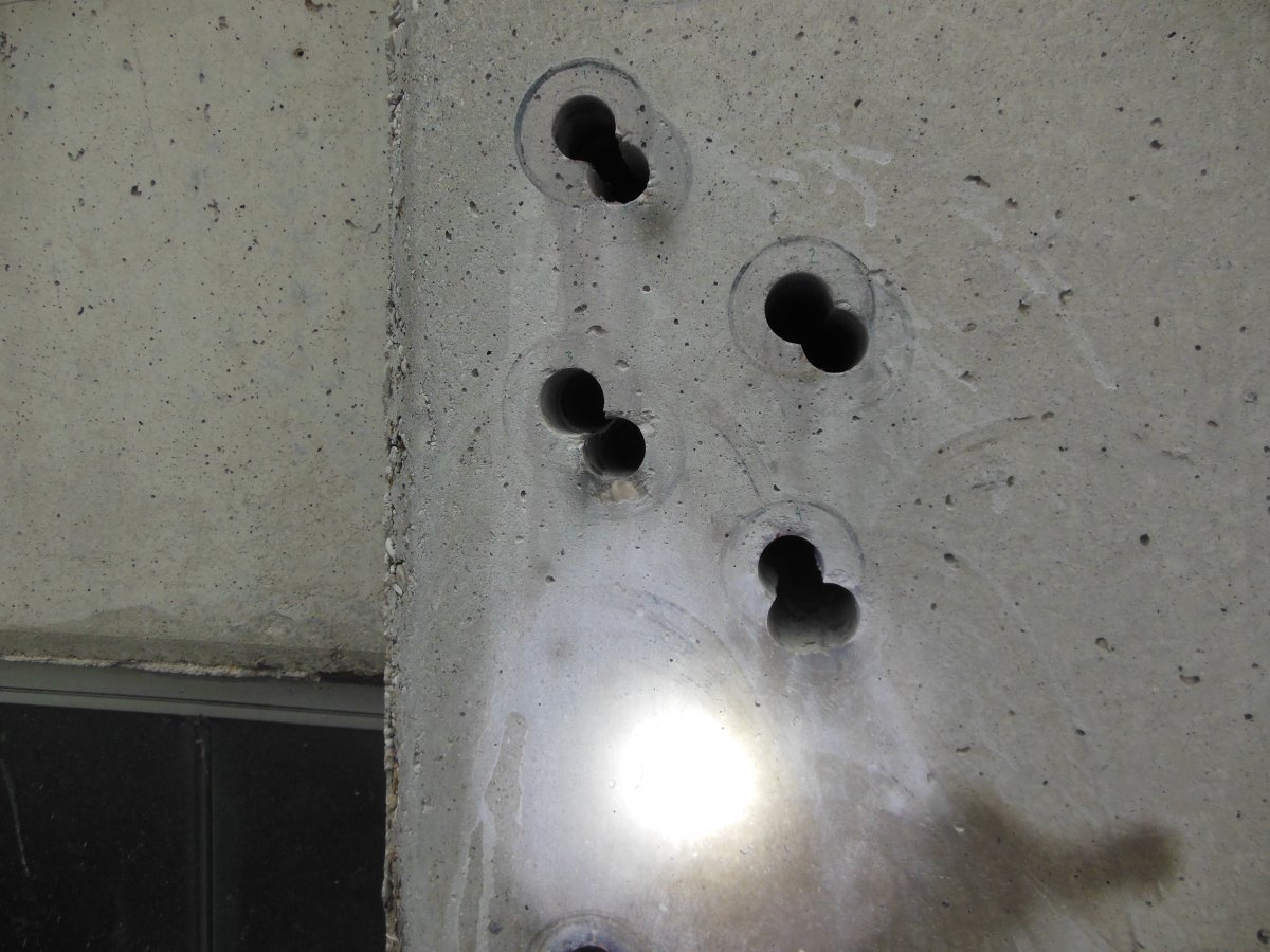 Carotaggi ad acqua di strutture prefabbricate con controllo delle posizioni delle armature.