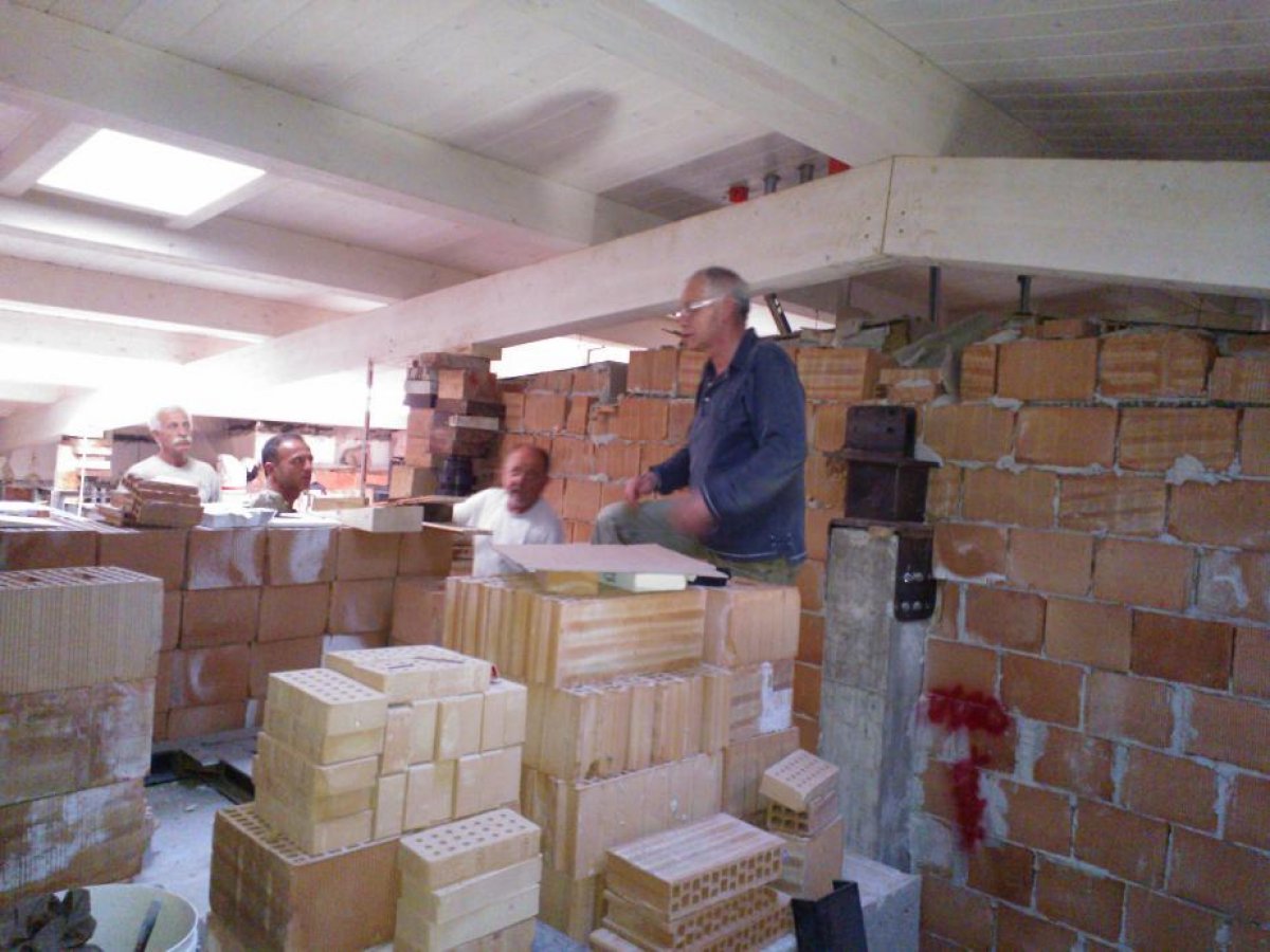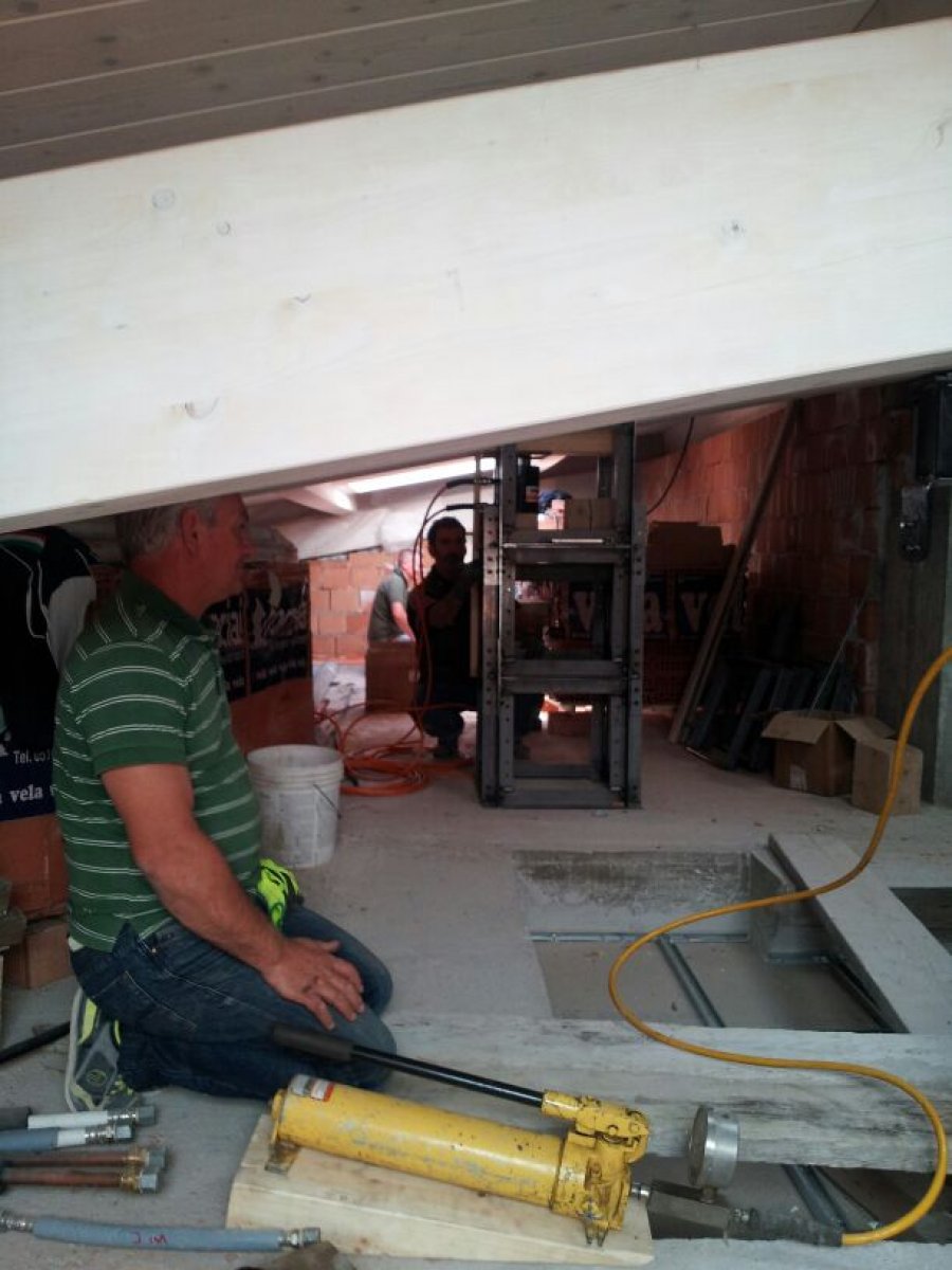 Sollevamento intera copertura in legno di un fabbricato predisposto durante la fase di costruzione.